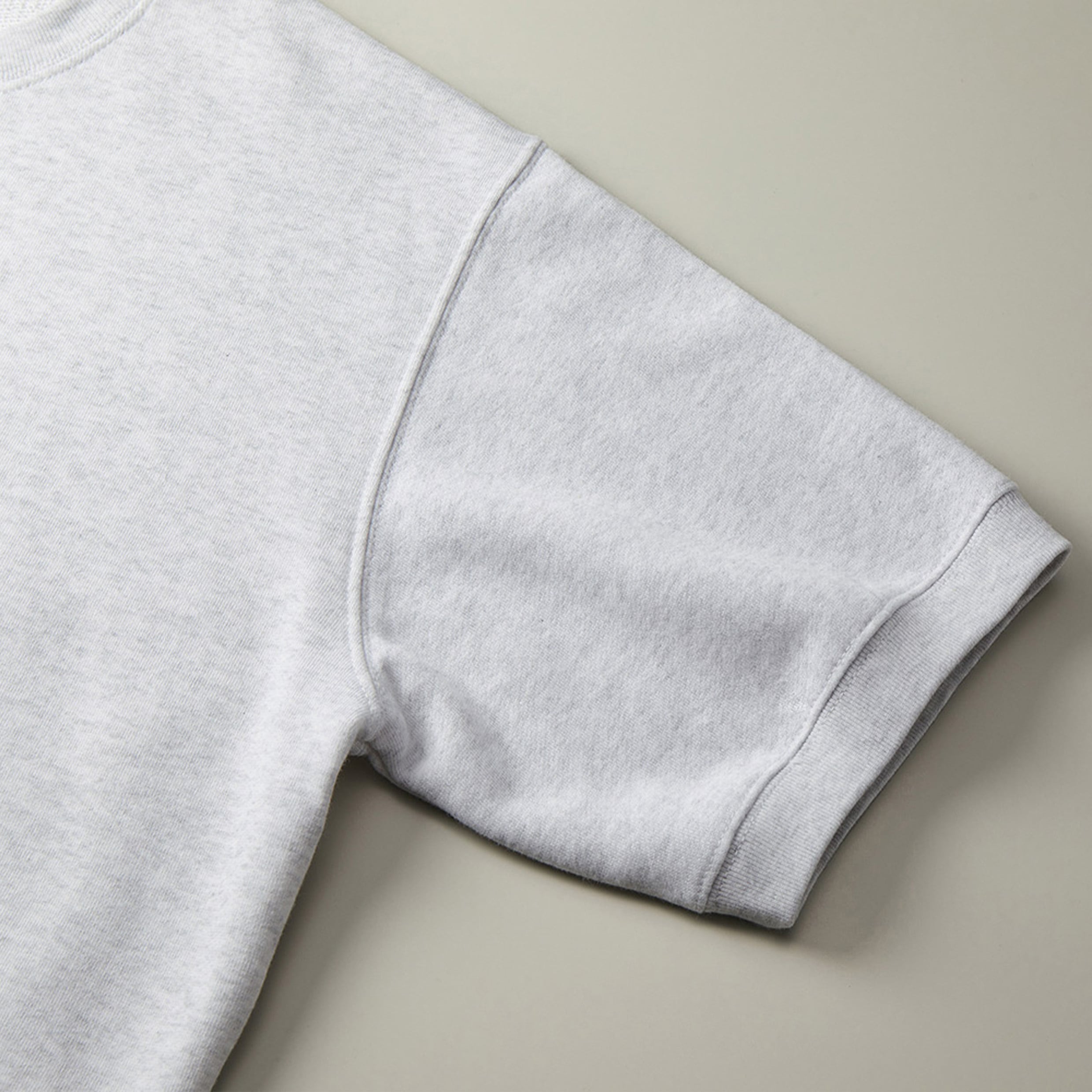 パイルの裏生地、ほどよい厚みと優しい肌ざわりが特徴。締め付け感のないよう広めに仕上げた袖口と裾口のリブや、身体のラインを拾わない程度のサイズ設計がリラックス感を演出します。一枚でスタイリングの主役になるだけでなく、スウェットショートとセットアップでご着用いただけます。
